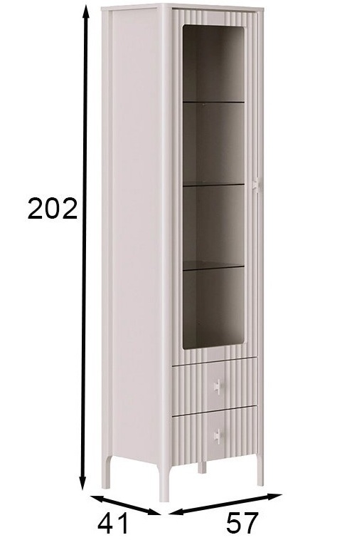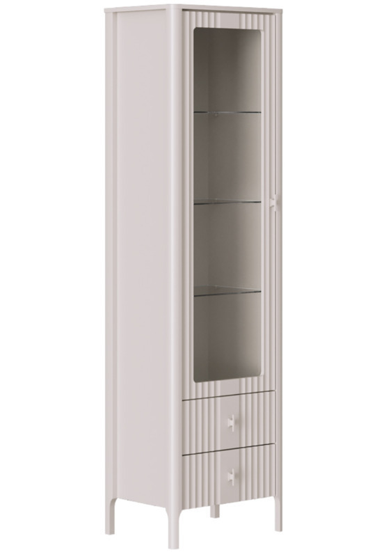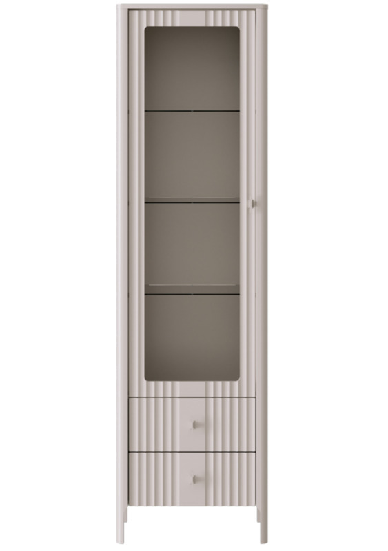 - В центральной части витрины Dalia KOM1W2S находится отделение с тремя стеклянными полками 5 мм. за распашным рифленым фасадом со стеклянной вставкой из закаленного стекла 4 мм;