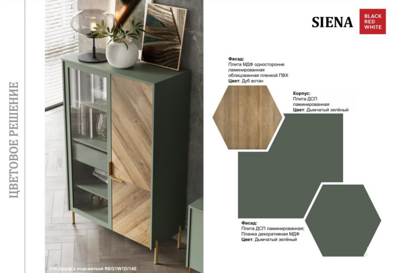 Вся коллекция мебели SIENA (СИЕНА) в цвете дымчатый зеленый/дуб вотан - ЗДЕСЬ