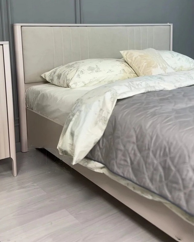 - Высокое изголовье с мягкой вставкой (ткань - велюр), фигурный карниз;