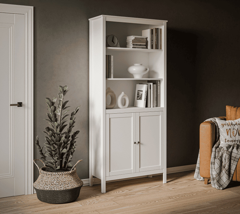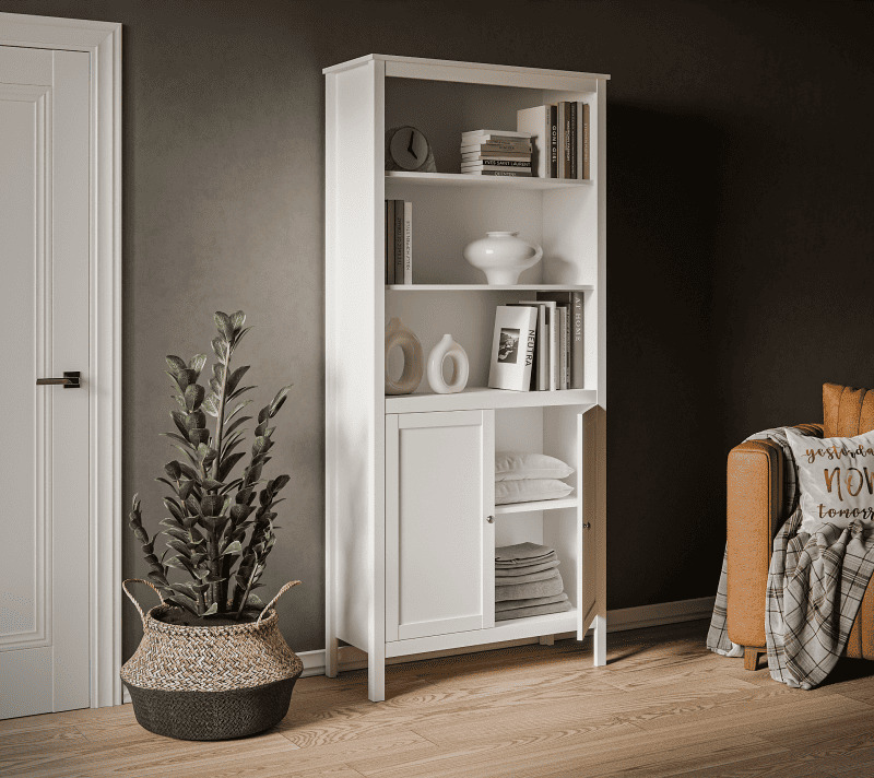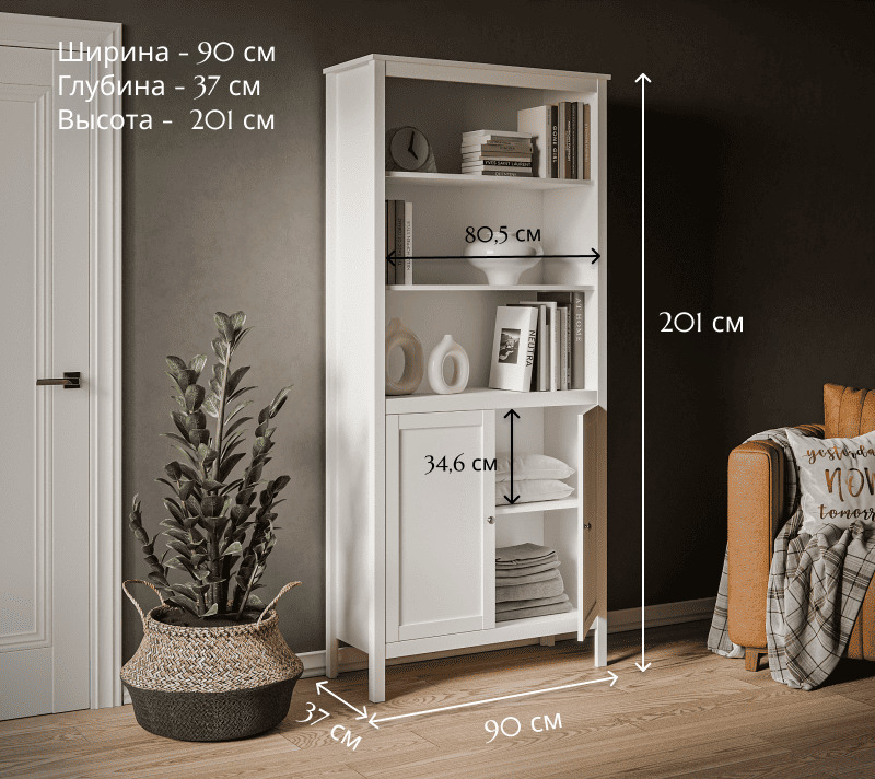 Шкаф Ewa Ewa REG2D разделен на два отделения: открытое отделение с полками и отделение с полкой за распашными глухими дверцами (фасадами).