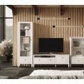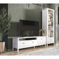 Тумба под телевизор Ewa RTV1D1S3 состоит из трех отделений: один выдвижной ящик на роликовых направляющих, открытое отделение и отделение за распашной глухой дверцей (фасадом). В задней стенке тумбы ТВ имеется отверстие для выхода кабелей теле-радио аппаратуры. Габариты тумбы позволят поместить телевизор любой диагонали. В отделениях тумбы можно разместить другую технику и необходимые аксессуары.