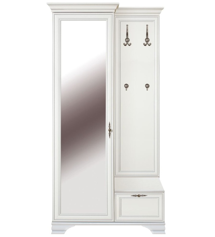 - в левой части расположено отделение с полкой и выдвижной штангой для одежды за фасадом с зеркальной вставкой;