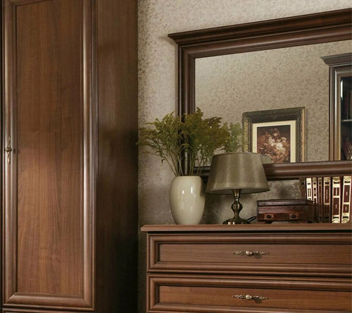 Зеркальное полотно крепится в рамку из декоративной планки выполненой из МДФ. В верхней части зеркала прикреплен декоративный карниз из патинированной планки из МДФ. Зеркало Кентаки S132-LUS/155 входит в набор мебели для спальни и украсит интерьер загородного дома или квартиры.