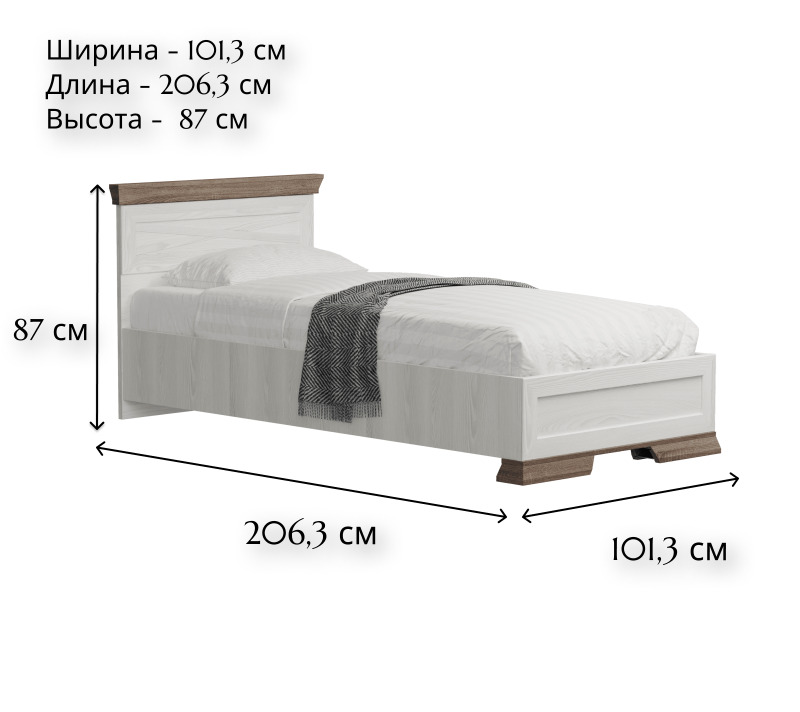 Кровать Marselle LOZ90х200 ясень снежный/дуб сонома темный