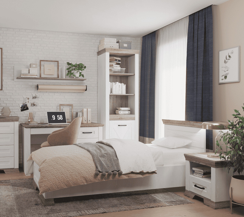 Кровать Марсель (Marselle) LOZ90х200 ясень снежный дополнит комнату ребенка (подростка), украсит ее вместе с письменным столом Marselle BIU130.
