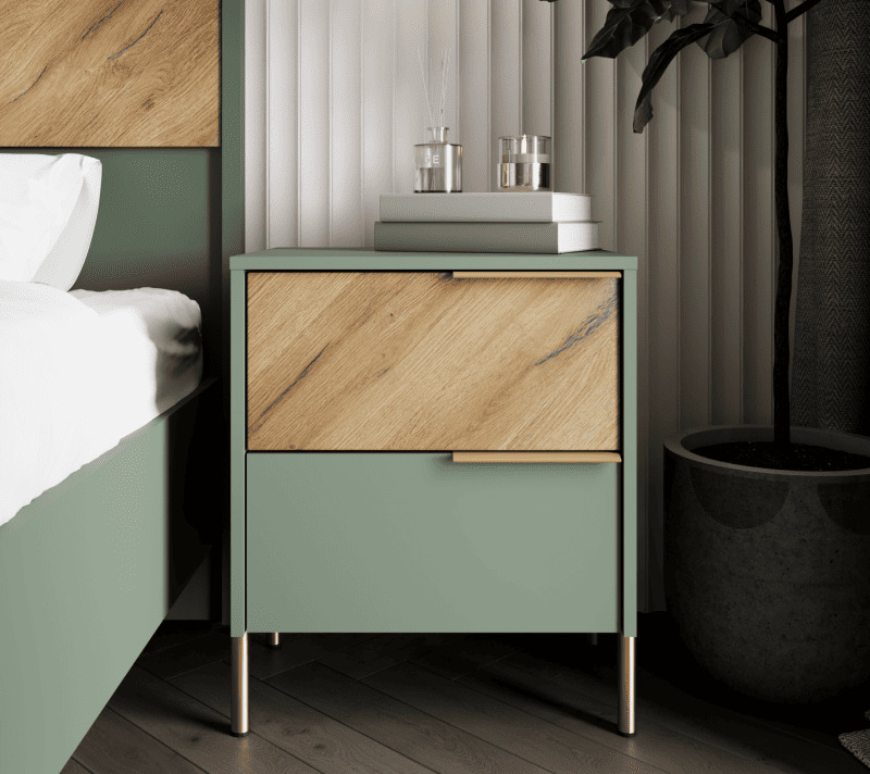 Тумба прикроватная Siena KOM2S дымчатый зеленый/дуб вотан